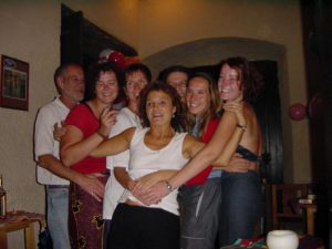 Met een flinke dosis humor kreeg het thuisfront al mijn verhalen te lezen en ik snap nu achteraf beter waarom mijn moeder soms haar hart vasthield en maar hoopte dat ik thuis zou komen. Soldaten met mitrailleurs die jouw taxi aanhouden, een avondklok, een apenbeet en ontstoken vinger, de signalen van mijn zieke lichaam negerend en flauwvallen in een restaurant, op een jungle tocht bijna door de bamboe brug zakken, toezien hoe verslaafde mannen de hele dag opium roken, in een bordeel belanden en het zelf niet door hebben… Sja, wist ik veel. Op deze foto in Antigua, Guatemala zie je mij als tweede van links met andere reisgenoten.