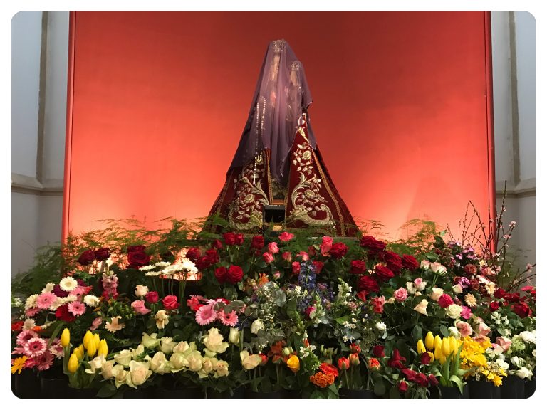 Vanochtend fiets ik even naar de binnenstad en dan word ik door mijn gidsen uitgenodigd om even de Maria kapel in de Sint Jan te bezoeken. Als ik bij de Sint Jan kom en over de opnieuw gelegde straatkeien fiets…