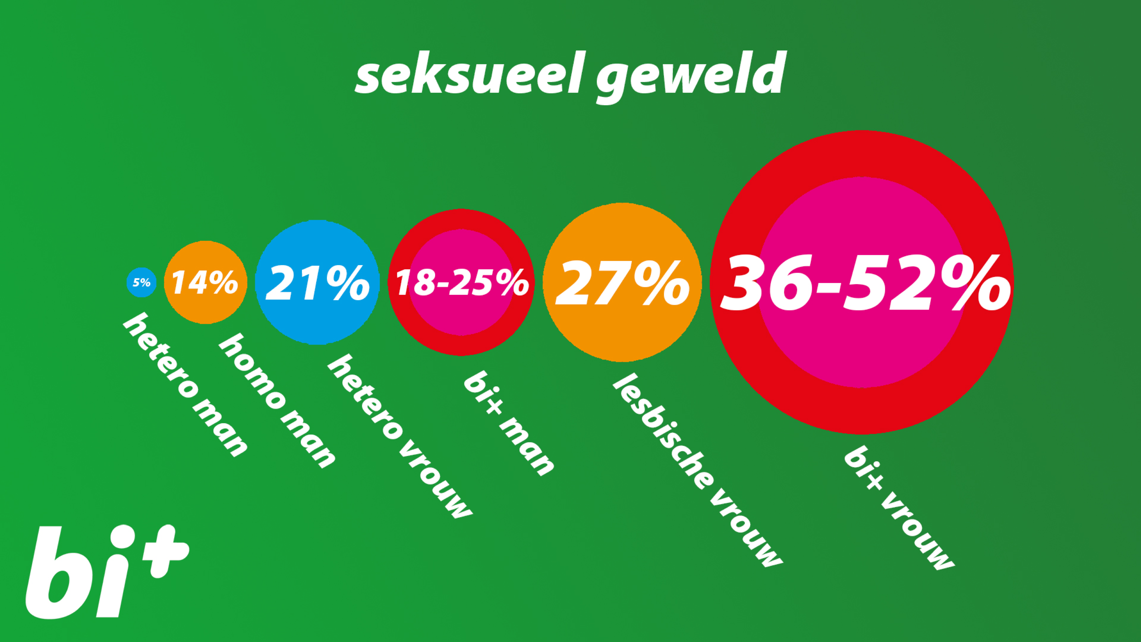 Volgens de website van de Bi+ vereniging, hebben ongeveer één miljoen Nederlanders bi+ gevoelens of ervaringen. Je bent bi+ als je je aangetrokken voelt tot meer dan één geslacht of gender. Veel mensen vinden het moeilijk vinden om voor hun Bi+ identiteit uit te komen. 26% van de mensen die Bi+ zijn ervaren psychische ongezondheid in vergelijking met hetero seksuelen (11%), en homo/lesbische mensen (17%). De hoeveelheid seksueel geweld is ook voor Bi+ mensen groter dan voor anderen, zo blijkt uit de presentatie van Bi+ Nederland. Dat is nogal wat!