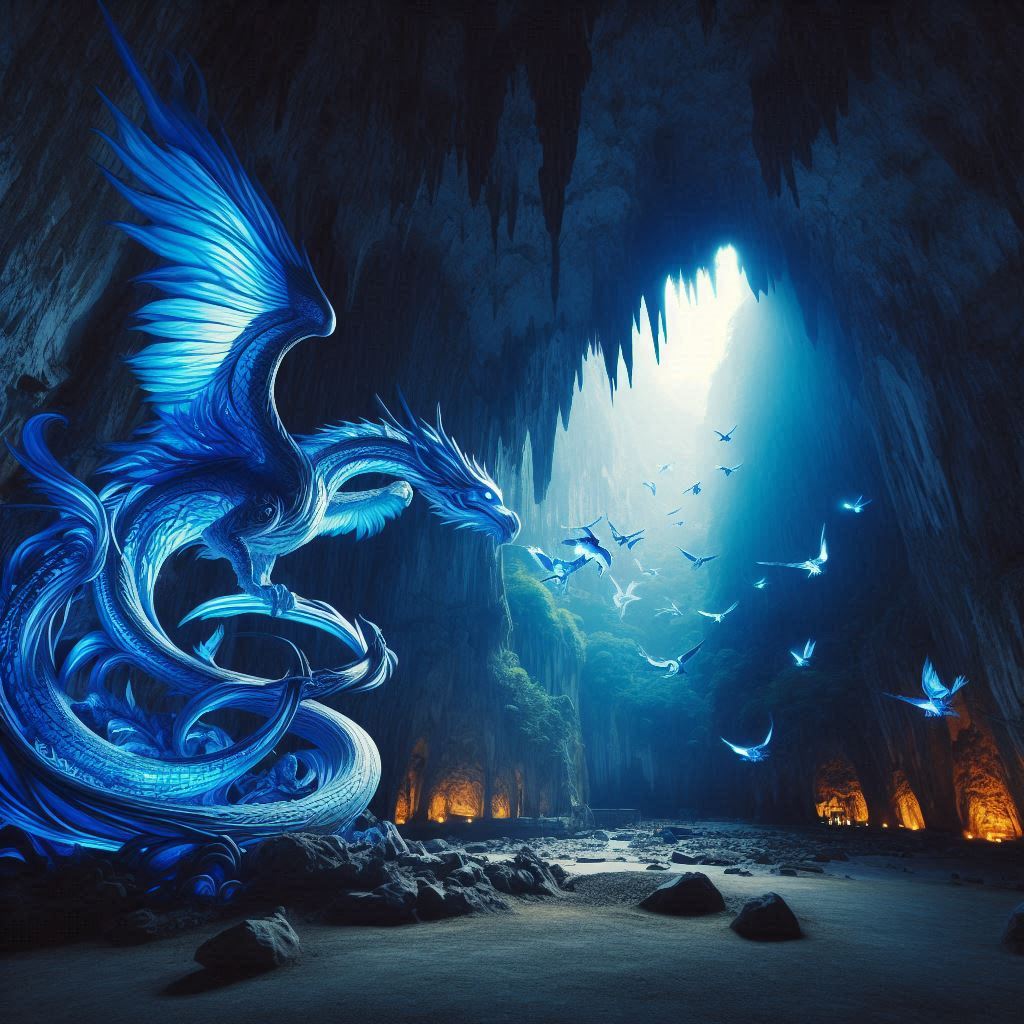 Dan gaan ze op weg naar de grot. Hand in hand lopen ze de grot in, gelokt door het licht van het vuur in de verte. Achterin de grot ligt een grote rode draak. Hij laat hen zijn vuur zien, zegt dat hij blij is dat ze er zijn, want nu bestaat hij pas. Want als er niemand is om zijn kracht aan te laten zien, heeft hij geen bestaansrecht en doet zijn leven er niet toe. Dan is hij niemand. Dan is hij niets. Nu de twee kleine meisjes er zijn kan hij zich groot en machtig voelen. Kom, ik zal jullie mijn kracht laten zien, zegt hij dankbaar. Ze gaan aan de kant van de grot zitten en kijken naar het schouwspel van de vuurspuwende draak. Het is heel indrukwekkend.