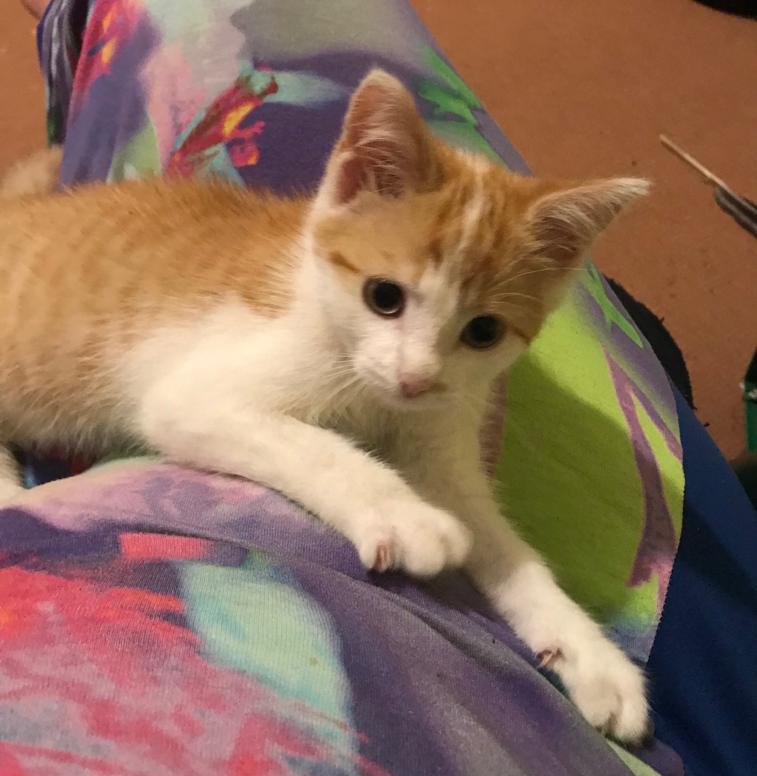 Tinky is onveilig gehecht. Haar baasjes hadden haar en de rest de kittens uit het nest, na 5 weken in een doos gezet onder een viaduct. Daar was ze gevonden. Tinky en nog een kleintje leefde nog.