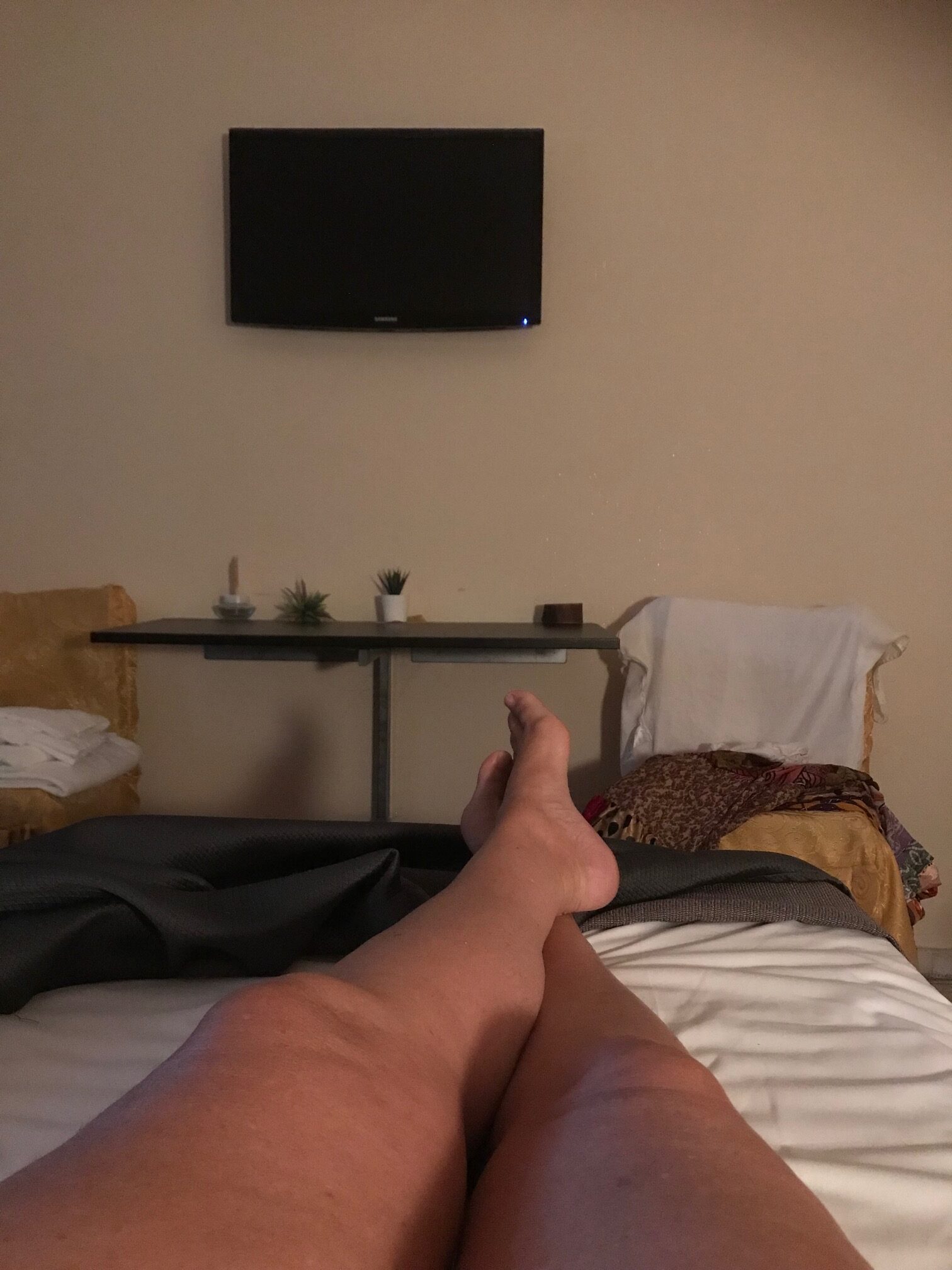 Toen ik op bed lag te genieten met mijn biertje zag ik vanuit mijn ooghoeken Ricardo naast me zitten. Hij had me als ex-gigolo in Cantania een leuke avond bezorgd. Hé, ben jij er ook nog? Hij zat voorover gebogen naast me op bed met een mobieltje in zijn hand.