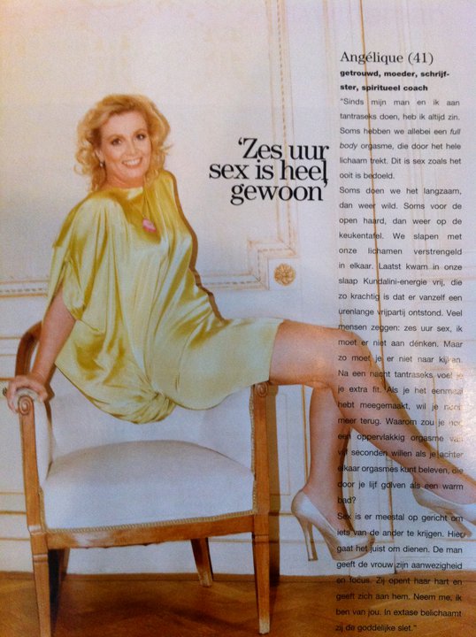 Angelique is een van de vrouwen die ik ken van de transmissie- en tantratraining bij Vartman. Ze is een van de dappere vrouwen die durft te vertellen over haar seksleven. Nou ja, met zo’n spetterend voorbeeld wordt de drempel om over je seksleven te vertellen misschien toch wat verlaagd 😉